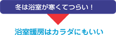 温風暖房や、パネルヒーターで暖房するとぽかぽか快適な浴室が実現。