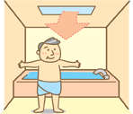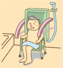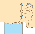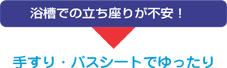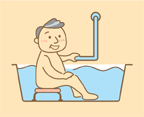 浴槽内では手すりでバランスをとり、なおかつお尻の位 置が高くなるので立ち座りの動作がしやすくなります。 安心して入浴できます。