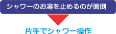 片手で手元のボタンを押すだけで簡単にお湯を出したり止めたりできるシャワーはみんなが便利。節水にもなります。