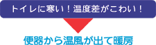便器に温風機内臓。スペースを取らずにトイレ内を暖めます。トイレが寒くなくなります。