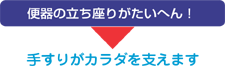 トイレの脇に手すりを付けると座ったり立ったリがラク。座っている時も掴まれるので安心です。