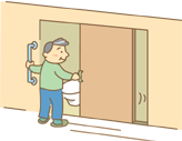 つり位置を変化させながらドアがスライドするので身体をほとんど動かさずに開閉できます。